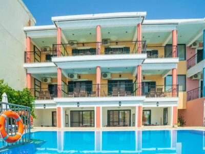 Located just 200 meters from the center of Nidri, in a quiet and green setting, the property features a swimming pool and children’s pool, fully equipped apartments with kitchen facilities, air conditioning, satellite TV, and furnished balconies with mountain or pool views. Restaurants, shops, and the marina are within walking distance, while Passa Beach is only 1.5 km away. Ideal for relaxing family holidays in Lefkada.