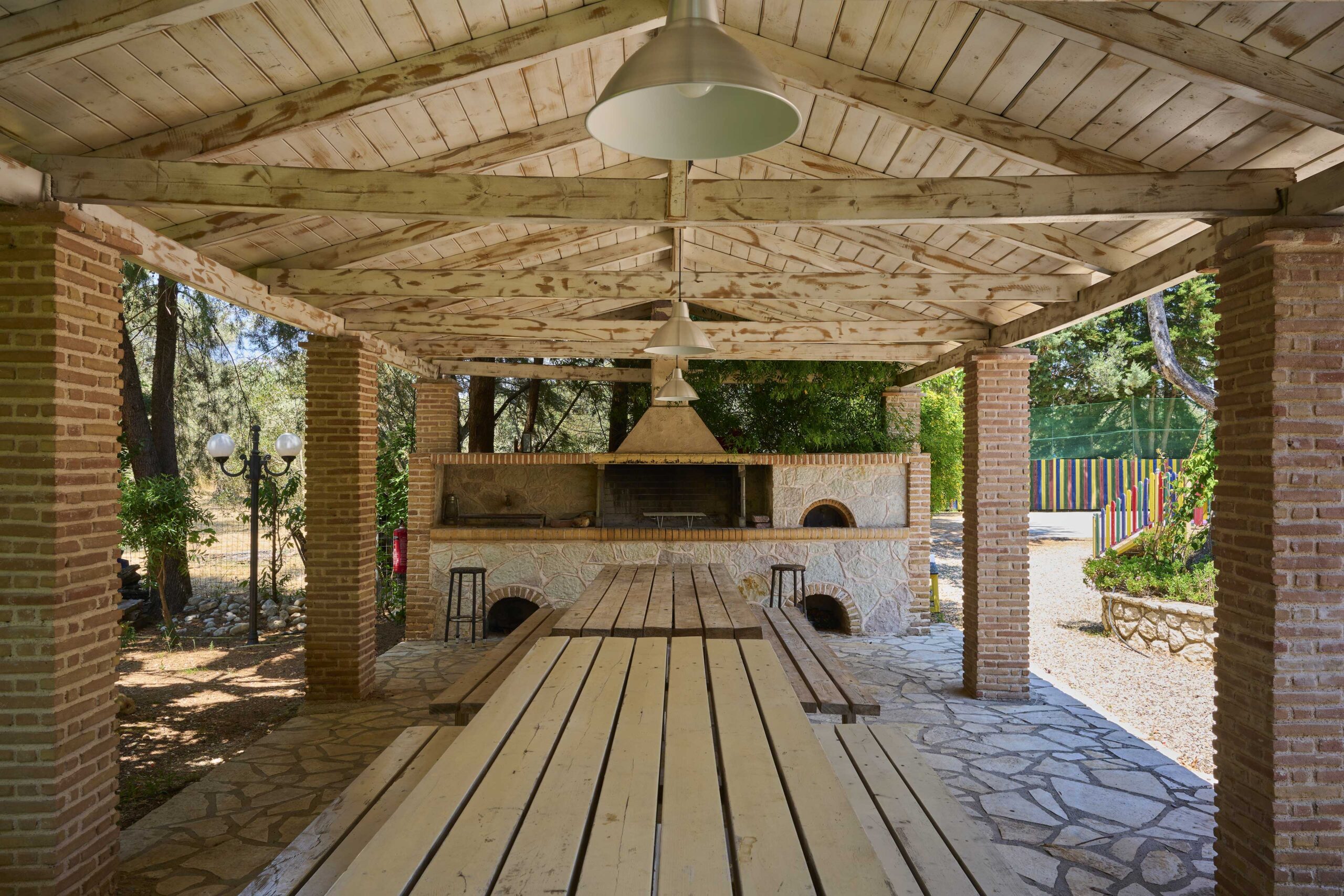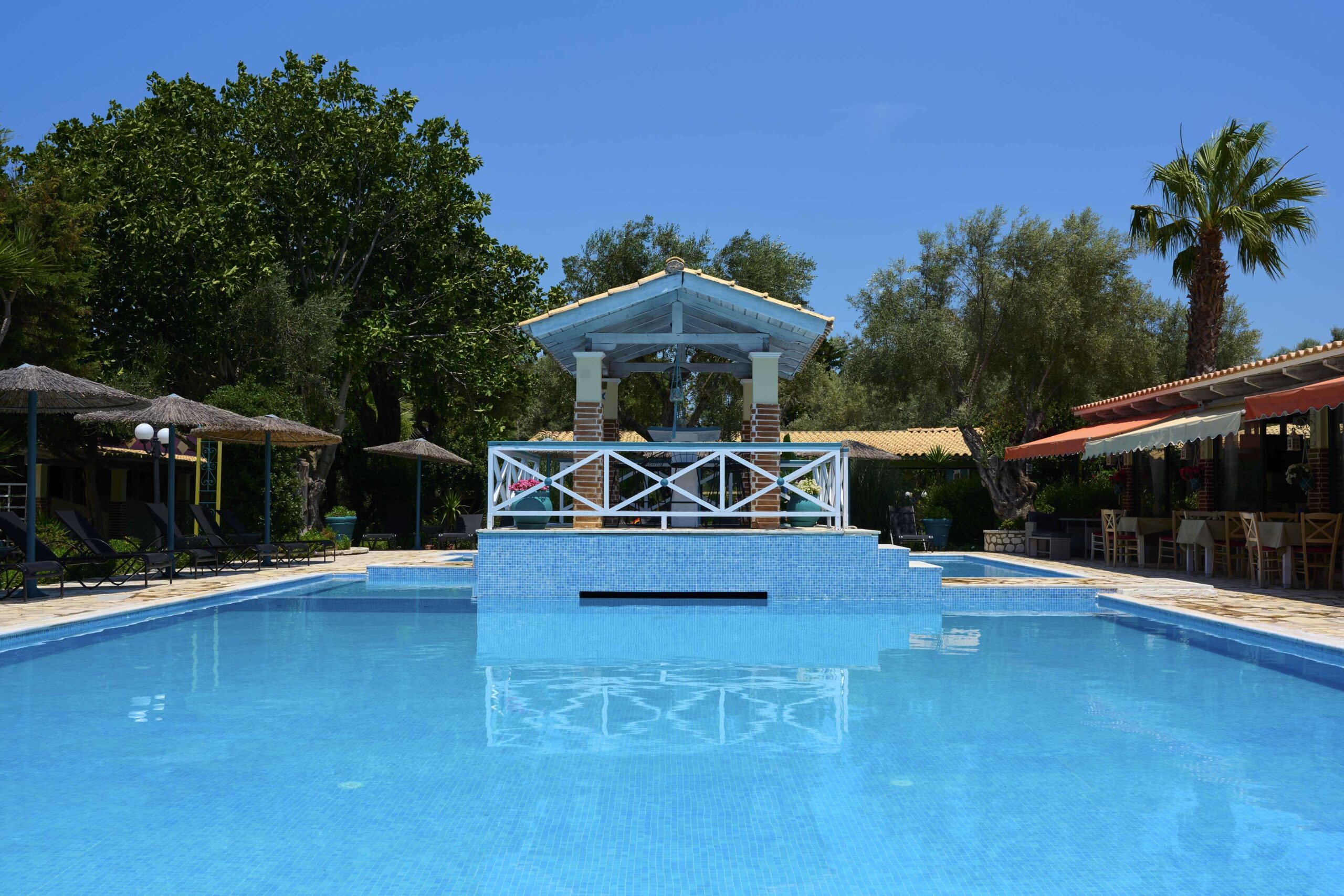 Guests can enjoy the outdoor swimming pool, landscaped garden, BBQ facilities, and a breezy terrace perfect for sunset views. Additional amenities include a pool/snack bar, breakfast service, free Wi-Fi, on-site parking, reception services, and credit card acceptance. Family-friendly facilities such as a children’s playground and tennis court are also available, while a doctor is on call for added comfort and peace of mind.